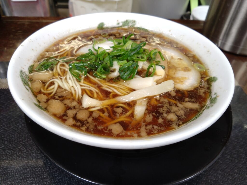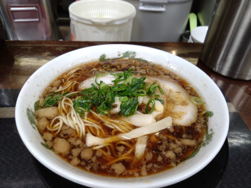 - 醤油のコク:大量の背脂も良いアクセントになっています。これまで頂いた他のお店の尾道ラーメンと比べるとスープの醤油味の度合いが強い。